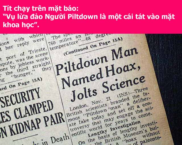 41 năm sau, tức năm 1953, một lần nữa tờ New York Times lại loan báo tin nóng về “Người Piltdown”, nhưng lần này là tin rất buồn: “Người Piltdown” là vụ lừa đảo vĩ đại nhất trong khoa học!